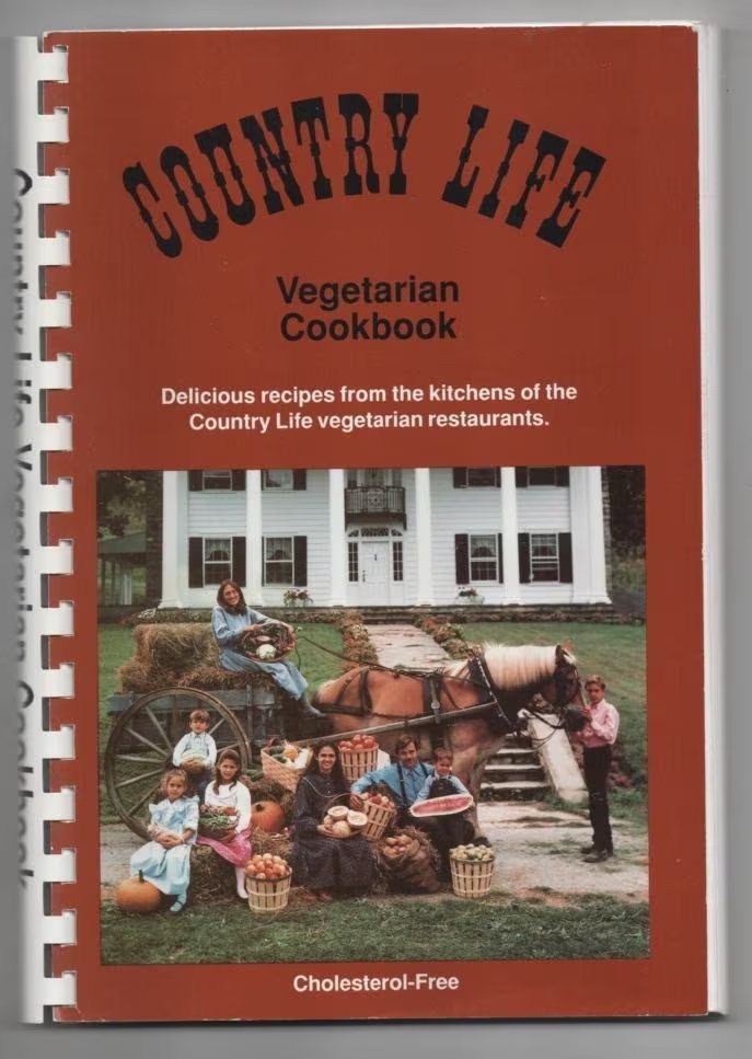 Country Life Vegetarian Cookbook (from the Country Life vegetarian restaurants). Here are a few SUPER GOOD ONES. It has too many recipes for me to flip through all the pages. Simple Granola, Crumble Topping, Flaxseed French Toast, Dried Fruit Butter, Coconut Cream Pie, Harvest Nut Roast, Bread Dressing Roast, Squash Nests, Cashew Loaf, Millet Loaf, Peanut Butter – Carrot Loaf, Tofu Loaf, Oat-Burger Bake, Kasha Au Gratin, Macaroni Au Gratin, Brazil Nut Casserole, Vegetable Stroganoff, Chickpea A La King, Persian Dill Rice, Enchilada Sauce, Ketchup, Hummus, Zucchini Fillets, French Onion Soup – these have very good, 3 or more stars or “excellent” written by them by my family.