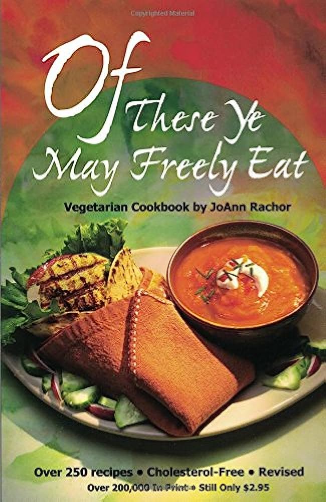 Of These Ye May Freely Eat – by Joann Rochor, she also has a crockpot (slow cooker) cookbook. There are a couple of recipes in the back of that book that are super good. I didn’t get that cookbook since I can’t use a slow cooker here. This book has over 250 recipes. Here are some favorites from this one. Dixie Toast, Banana Ice Cream, Maple Walnut Ice Cream, French Tomato Dressing, Soy-Oat Waffles, Oat-Burgers, Flax Bars, and Many More!