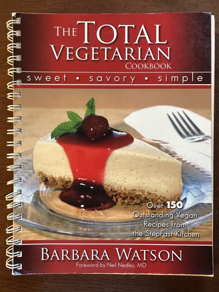 Seven Secrets Cookbook by Neva & Jim Brackett (owners of two plant based restaurants). This had GREAT INFO IN IT and AWESOME RECIPES! Just a few of my favorites: Light and Tender Waffles, Tofu Scramble, Basic Cream Sauce, Vegetarian Pizza, Bulgur Burger, Croutons, Simple Butter, Ranch-Style Dressing,, Pita Pocket Bread, Calzones, Armenian Lentil Soup, Mock Salmon Spread, Pumpkin Pie, Fruit Pizza, Lemon Cream Pie, Pineapple Date Bars, Peanut Butter n’ Honey Cookies, Fruit Thins, Coconut Macaroons, Almond Jewels, Vanilla Custard, and Many Many More!